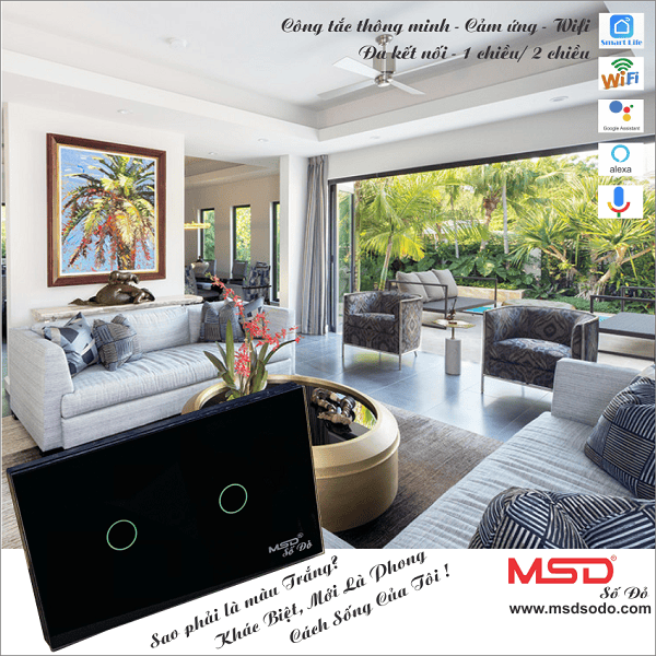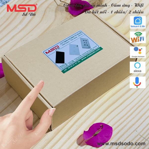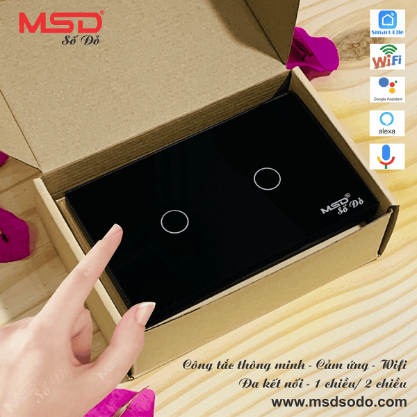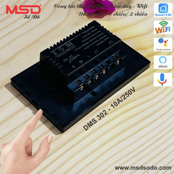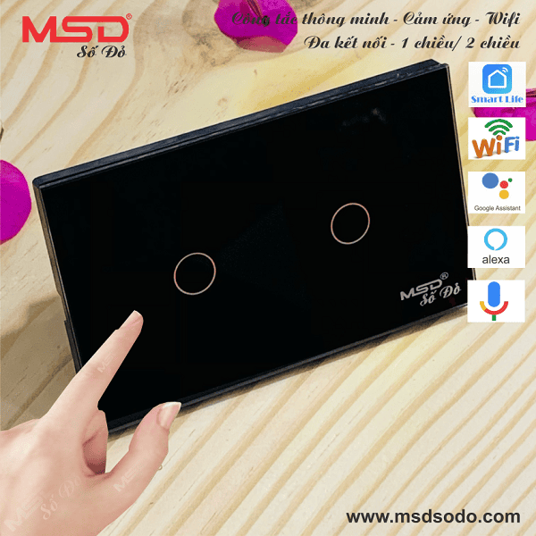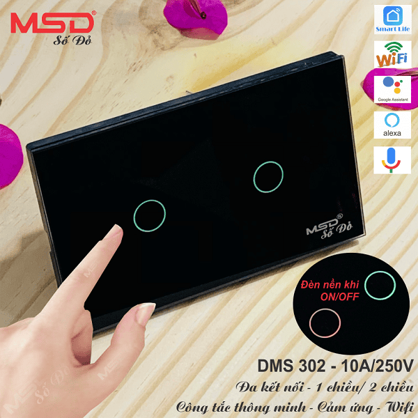 Công tắc Wifi MSD 2 nút nhấn - Cảm ứng - Giọng nói - 1 hoặc 2 chiều - DMS302BL