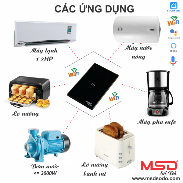 - Điều khiển bằng giọng nói tiếng Anh: Smart life , Alexa Amazon/ Echo