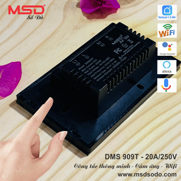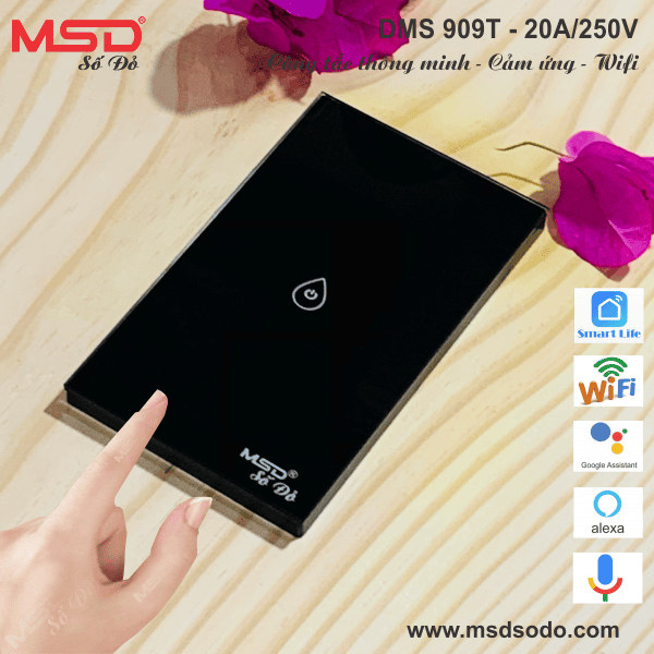 CÔNG TẮC 2 CỰC WIFI CẢM ỨNG - GIỌNG NÓI - 20A/250V