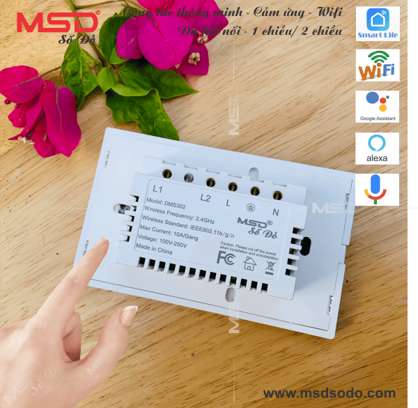 DMS302W CÔNG TẮC THÔNG MINH CẢM ỨNG WIFI 2 GANG - 1 VÀ 2 CHIỀU