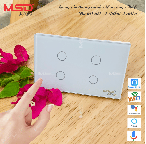 CÔNG TẮC THÔNG MINH CẢM ỨNG WIFI - ĐA KẾT NỐI 1 CHIỀU 2 CHIỀU 10A - 4 GANG - MÀU TRẮNG