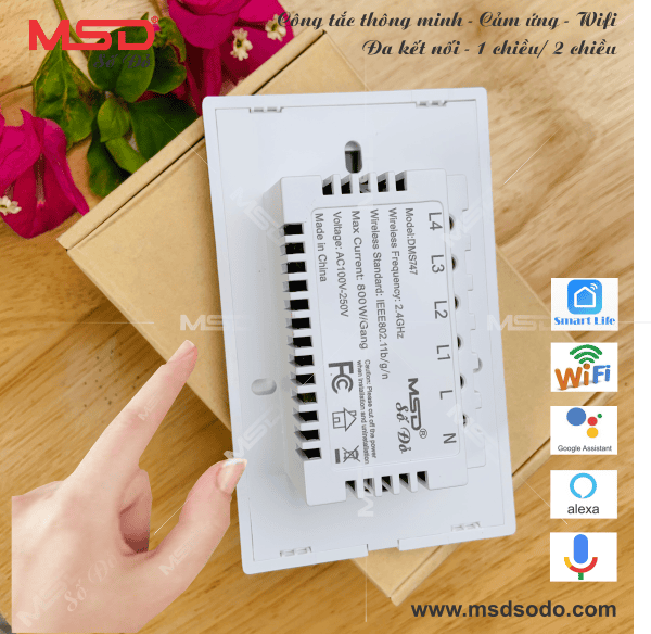 DMS304W CÔNG TẮC THÔNG MINH CẢM ỨNG WIFI 4 GANG - 1 VÀ 2 CHIỀU